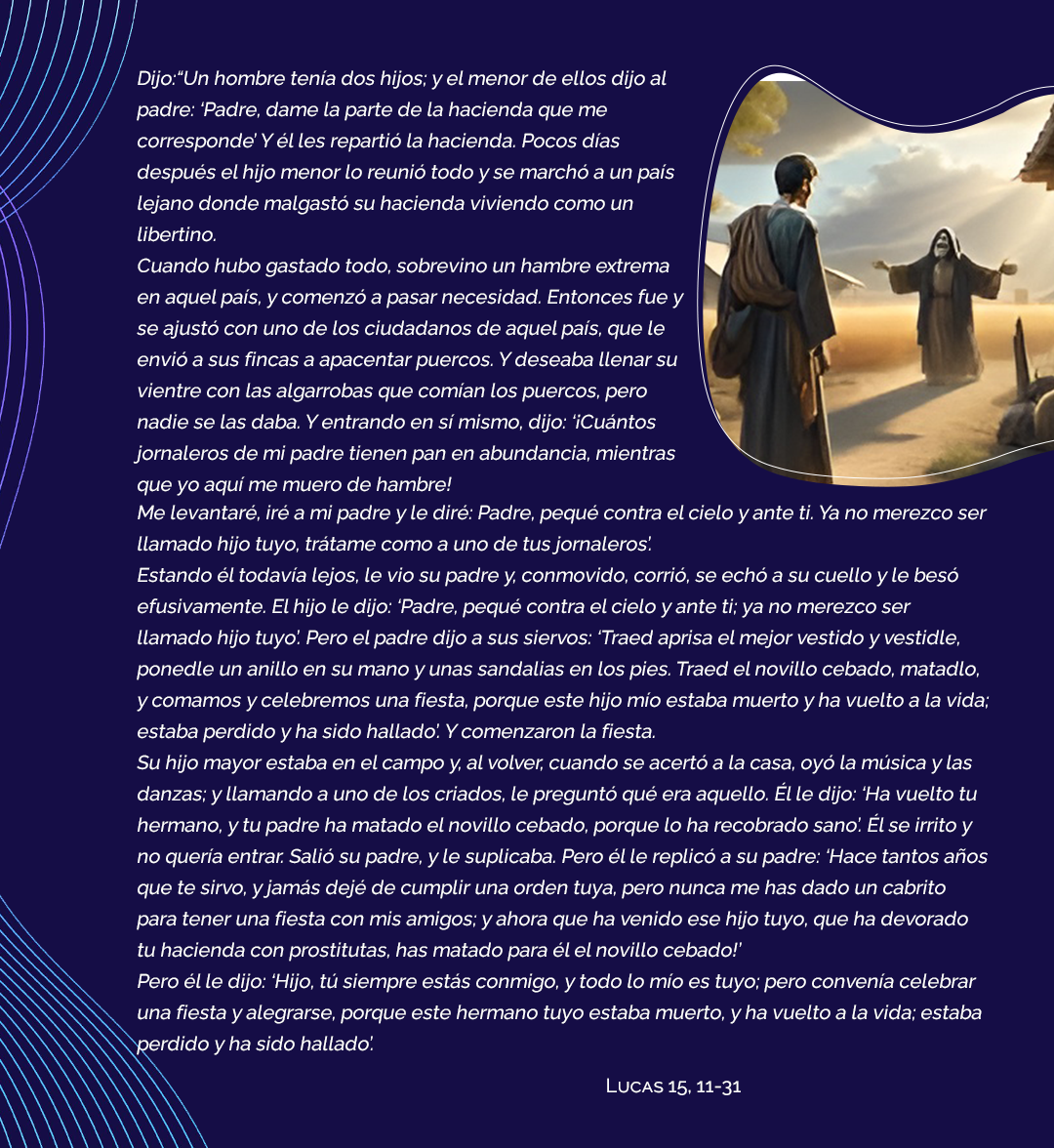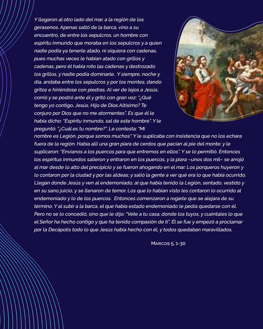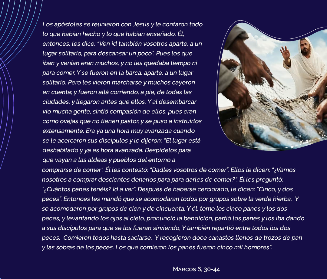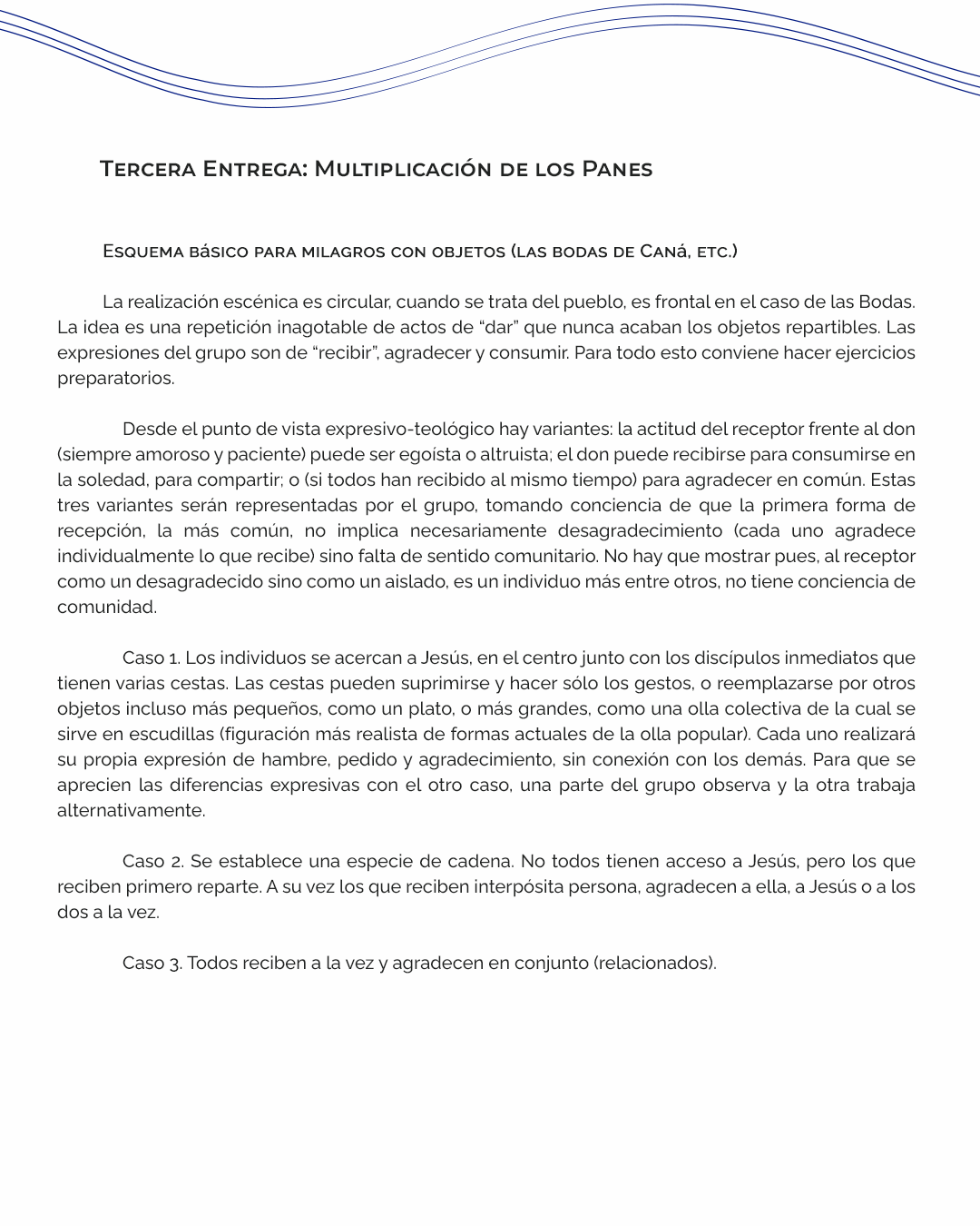 * 6/nov/2025 - Primera entrega: Curacion del paralitico * 13/nov/2025 - Segunda entrega: La Transfiguracion * 20/nov/2025 - Tercera entrega: La Multiplicación de los panes * 27/nov/2025 - Cuarta entrega: La expulsión de los demonios * 4/dic/2025 - Cuarta entrega: La resurrección de Lázaro * 11/dic/2025 - Quinta entrega: Parábola del hijo pródigo |